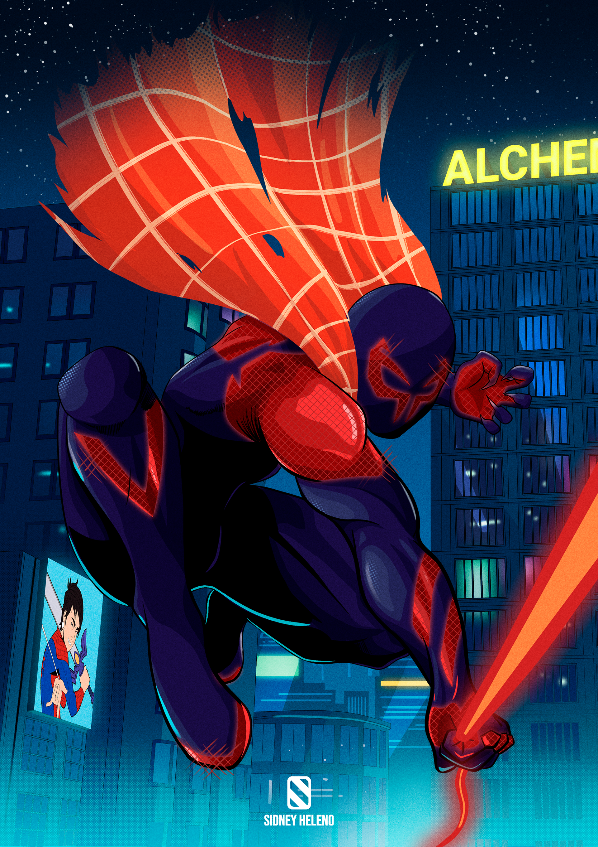 Esta é uma Fan Art do Homem-Aranha 2099, Miguel O'hara. Fiquei inspirado em desenvolvê-lo no meu estilo após assistir o filme Através do Aranhaverso.