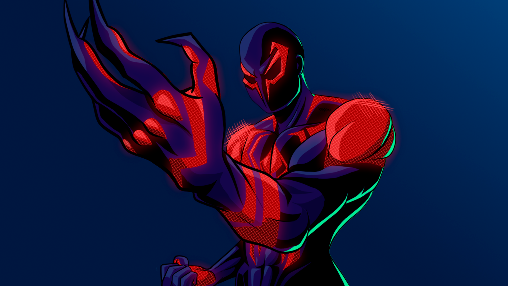I tried to replicate the hatches that appear on the red parts of the uniform, taking inspiration from the various stylizations that we see in the movie "Spider-Man: Across the Spider-Verse", trying to fit my style and reproduce my version of Spider-Man 2099.